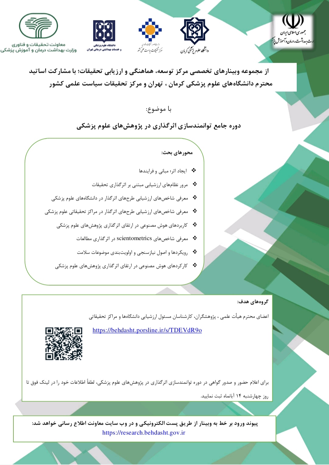 وبینار دوره جامع توانمندسازی اثرگذاری در پژوهش های علوم پزشکی