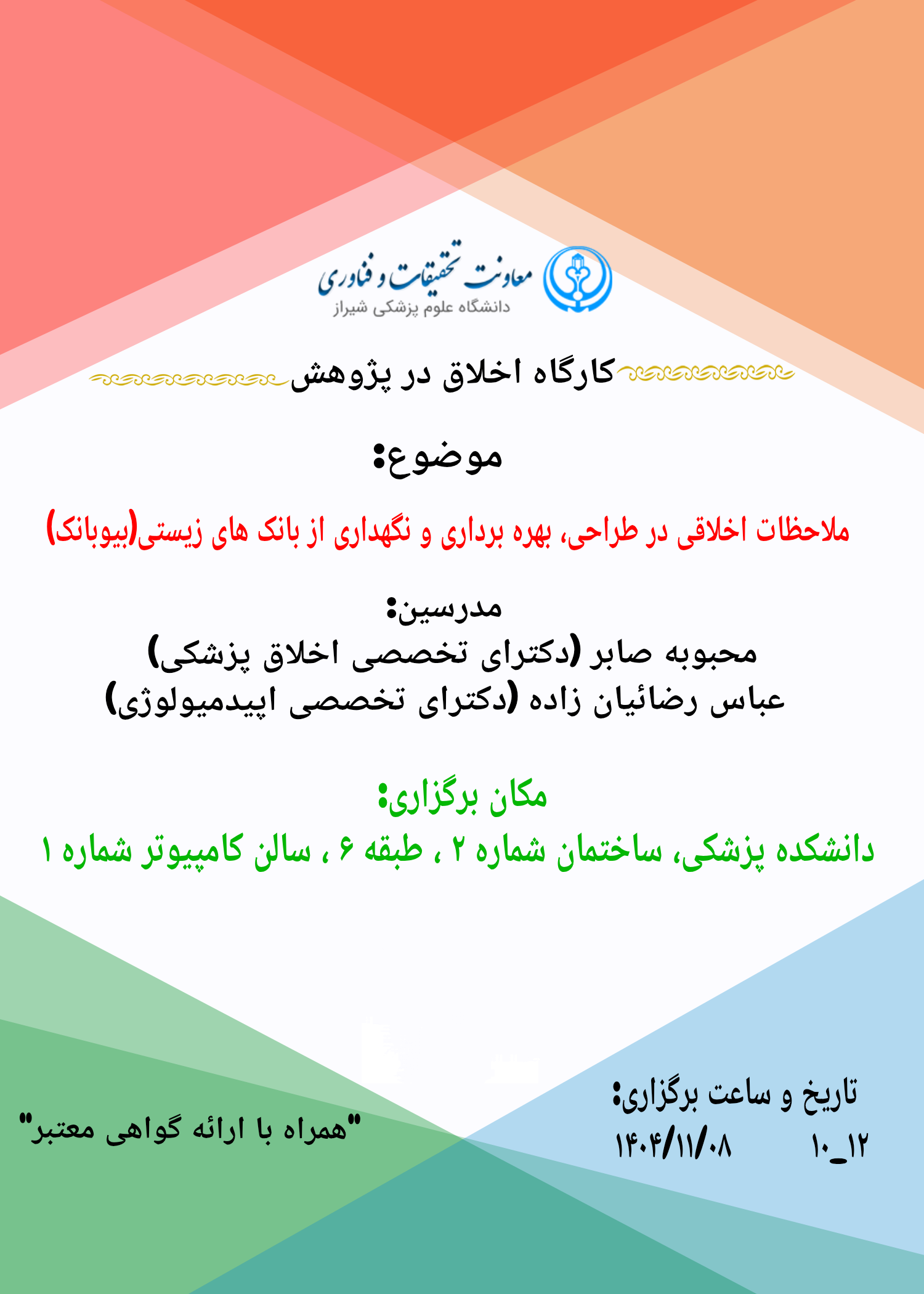 مکان: دانشکده پزشکی، ساختمان شماره 2، طبقه 6، سالن کامپیوتر شماره 1